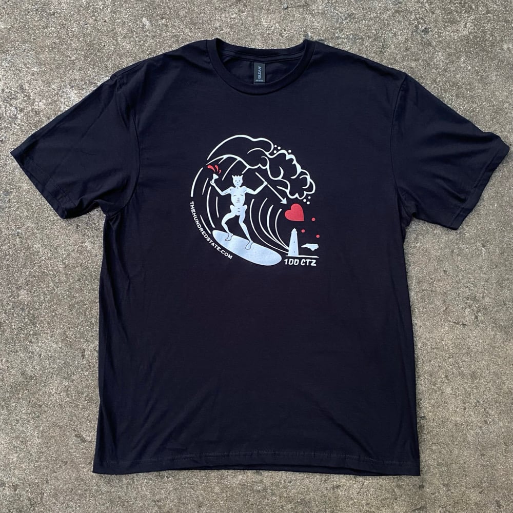 Super Soft Black Short Sleeve Cotton/Poly Blend red and white imprint